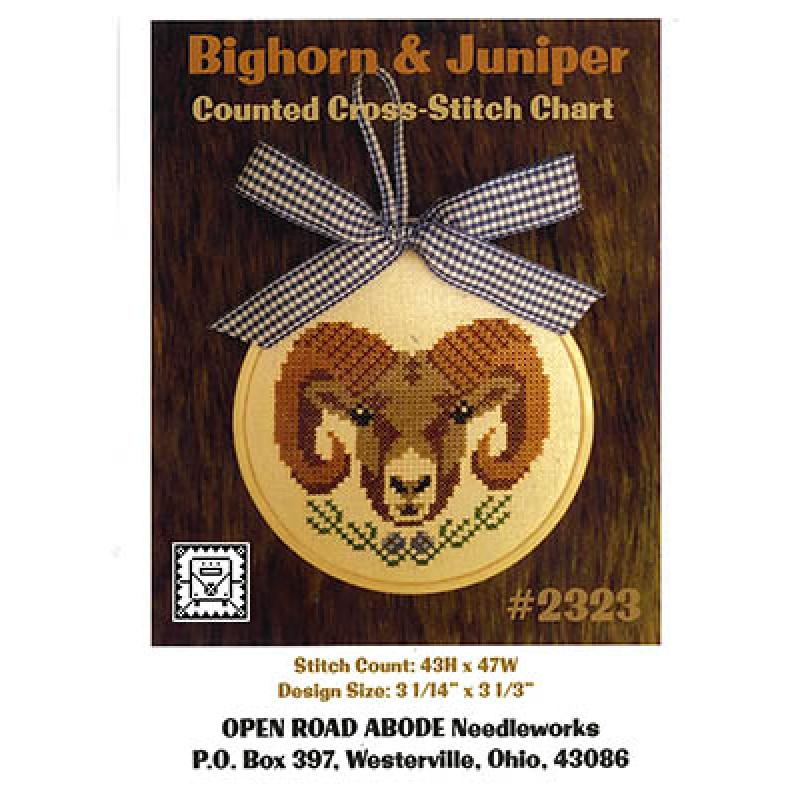 Bighorn & Juniper von Open Road Abode Needleworks ist ein kleines, detailreiches Wildlife‑Motiv, das die markante Silhouette eines Bighorn‑Schafs mit seinen imposanten Hörnern zeigt. Umrahmt wird das Tier von einer dekorativen Bordüre mit juniper‑artigen Elementen, die dem Design eine natürliche, leicht rustikale Note verleihen. Ein kompaktes, wirkungsvolles Motiv für alle, die Tierporträts und naturverbundene Stickkunst lieben.