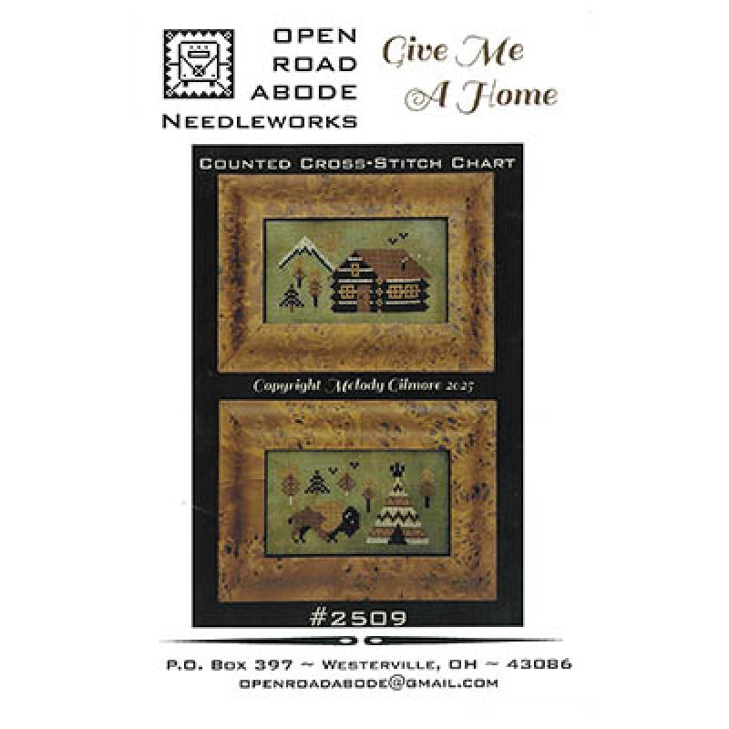 Give Me A Home Stickvorlage, Open Road Abode Needleworks, Western Kreuzstich, Blockhütte Stickmuster, Büffel Tipi Stickerei, Naturmotiv Kreuzstich, rustikale Stickvorlage, Lodge Cabin Deko, Outdoor Stickmuster