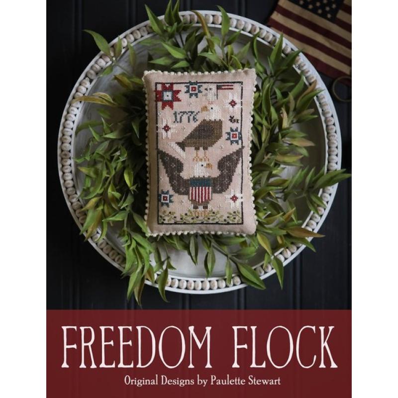 Freedom Flock von Plum Street Samplers ist ein wunderschön gestaltetes Americana‑Design, das die ikonische Symbolik des amerikanischen Adlers mit klassischer Sampler‑Ästhetik verbindet. Das Motiv wirkt gleichzeitig traditionell und frisch – typisch für Paulette Stewarts unverwechselbaren Stil. Der Adler trägt ein Schild mit Streifen, flankiert von kleinen Sternen und dekorativen Elementen, die das Thema Freiheit und Unabhängigkeit elegant unterstreichen.