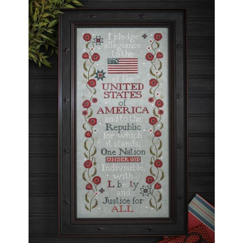 Die Stickvorlage „Pledge Of Allegiance“ von Plum Street Samplers ist ein beeindruckendes, vertikal gestaltetes Design, das den berühmten amerikanischen Treueschwur in kunstvoller Stickform präsentiert.