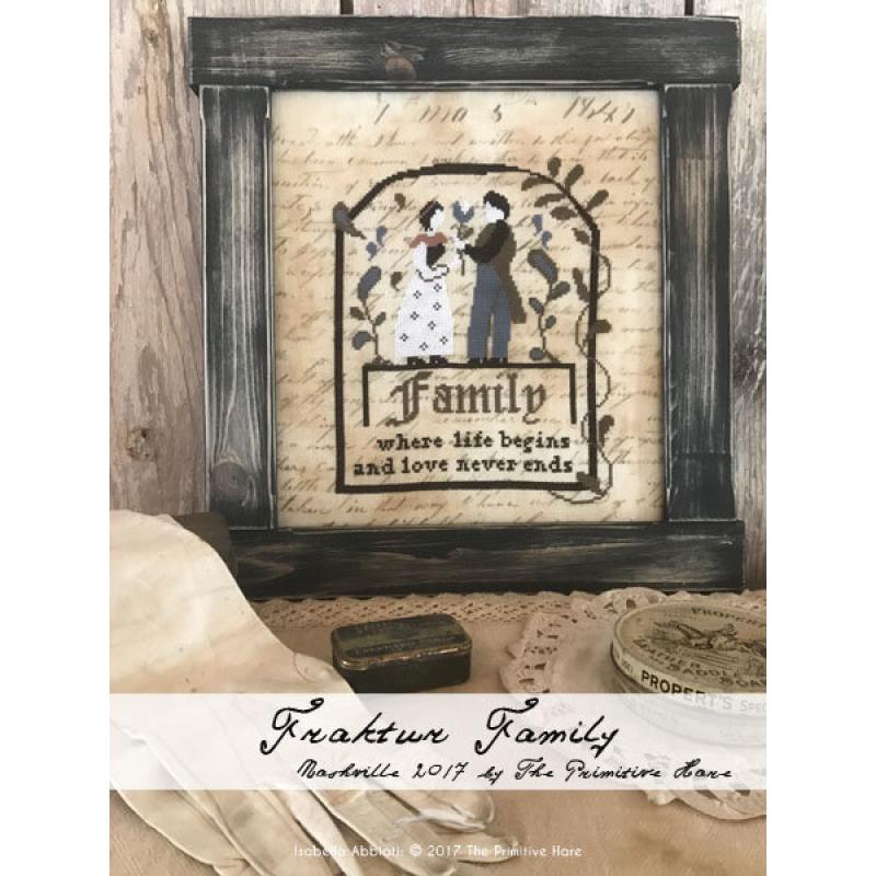 Die Stickvorlage „Fraktur Family“ von The Primitive Hare ist ein liebevoll gestaltetes Sampler‑Design, das traditionelle Fraktur‑Elemente mit einer zeitlosen Botschaft über Familie verbindet.