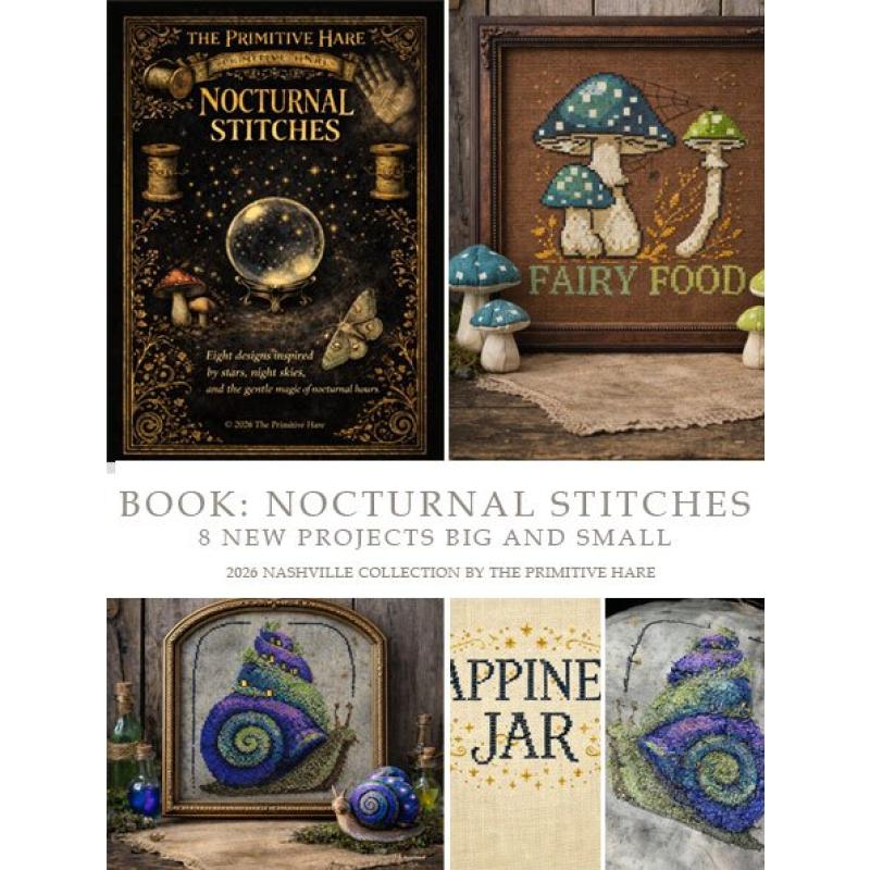 Nocturnal Stitches Stickvorlage, Primitive Hare Cross Stitch, Nashville 2026 Primitive Hare, Nachtmotive Kreuzstich, Woodland Stickmuster, Fantasy Cross Stitch Book, Pilze Stickvorlage, Schnecke Stickmuster, Kreuzstichvorlage