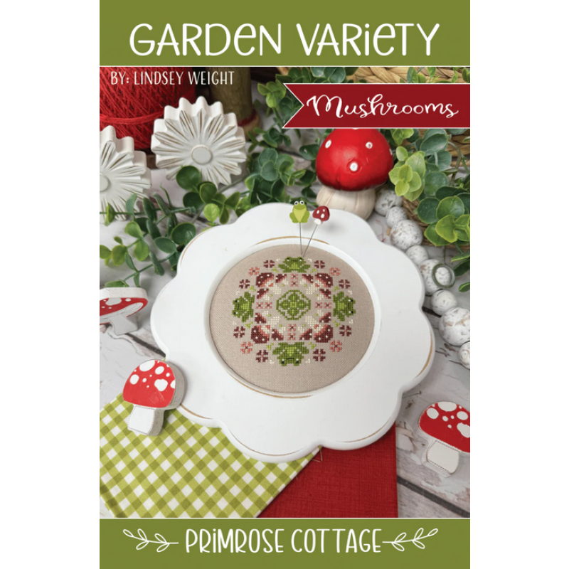 Die Stickvorlage Garden Variety: Mushrooms von Primrose Cottage Stitches bringt den Zauber eines kleinen Waldgartens direkt in dein Stickprojekt.