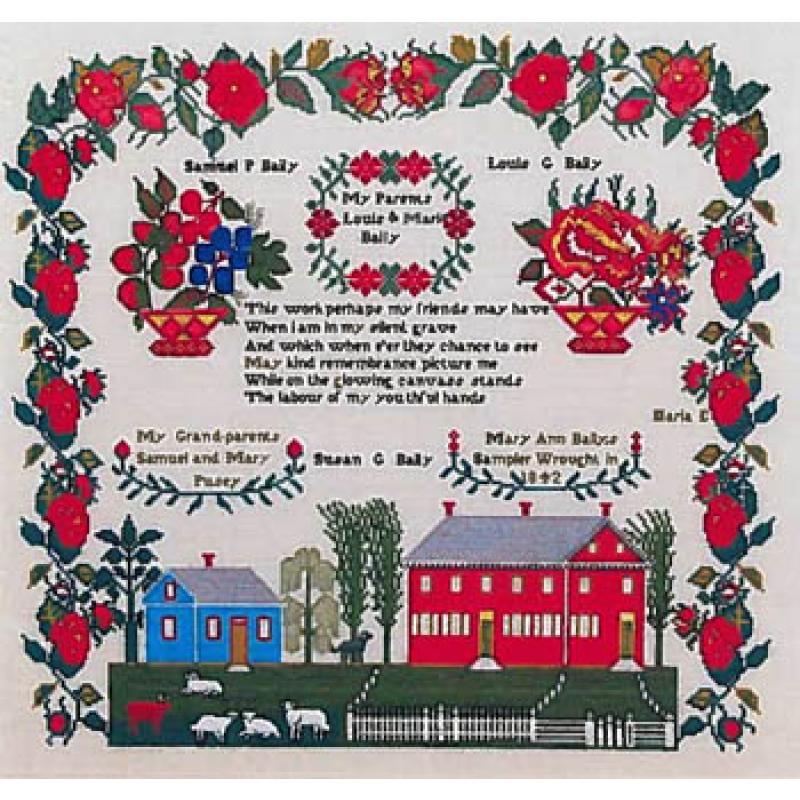 - Zählmuster, Blumen, Haus, Häuser, Sampler, Mustertuch, Mustertücher