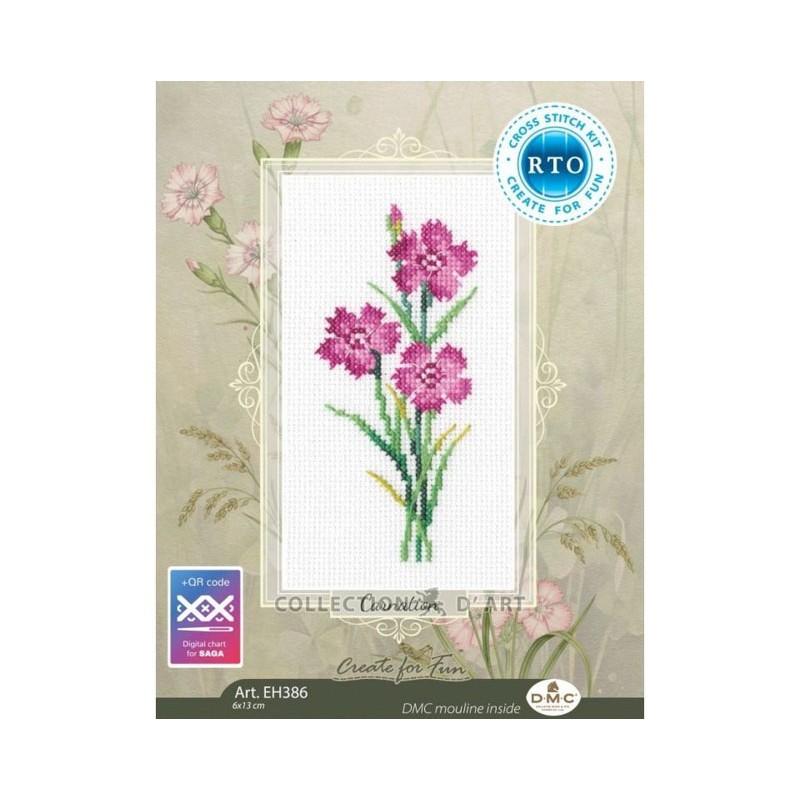 Kreuzstichpackung, RTO Carnation, Stickpackung Nelke, Kreuzstich Set Blumenmotiv, RTO Cross Stitch Kit, Stickset florale Blüte, Kreuzstich rosa Nelke, Stickbild Blumen kaufen, Stickpackung Naturmotiv, RTO Stickset Blumen, Stickpackung online kaufen