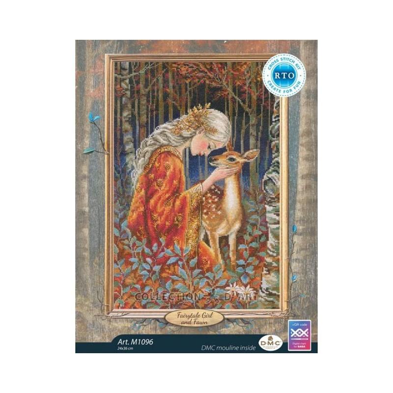 Kreuzstichpackung, RTO Fairytale Girl and Fawn, Stickpackung Märchenmotiv, Kreuzstich Set Mädchen und Reh, RTO Cross Stitch Kit, Stickset Fantasy Waldmotiv, Kreuzstich Naturbild, Stickbild Märchen kaufen, Stickpackung Waldszene, RTO, Stickset Fantasy, Stickpackung online kaufen