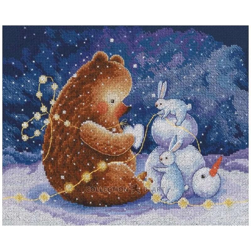 - Zählpackung mit Zählmuster, Kreuzstichset, Stickset gezählter Kreuzstich, Tiere, Hasen, Kaninchen, Igel, Jahreszeiten, Winter
