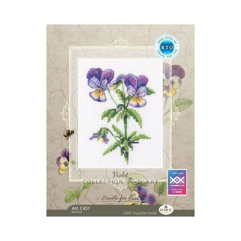 Kreuzstichpackung, RTO Violet, Stickpackung Blumenmotiv, Kreuzstich Set Veilchen, RTO Cross Stitch Kit, Stickset florale Blüten, Kreuzstich violette Blumen, Stickbild Blumen kaufen, Stickpackung Naturmotiv, RTO Stickset Blumen, Stickpackung online kaufen