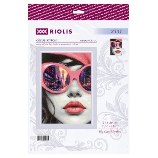 Die Stickpackung Big City Rhythm von Riolis ist ein echtes Highlight für alle, die moderne, ausdrucksstarke und kunstvolle Motive lieben. Das Design zeigt ein stilisiertes Porträt, bei dem das Gesicht in eleganten Grautönen gehalten ist – während die großen, runden Sonnenbrillen ein farbintensives Stadtpanorama spiegeln.
