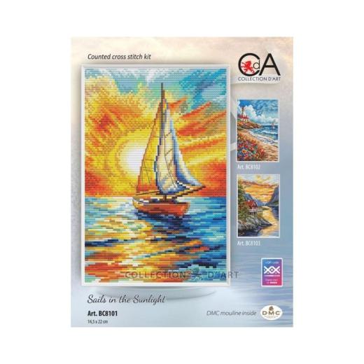- Zählpackung mit Zählmuster, Kreuzstichset, Stickset gezählter Kreuzstich, Landschaften, maritime Motive, Boote, Schiffe, Segelboot im Sonnenschein
