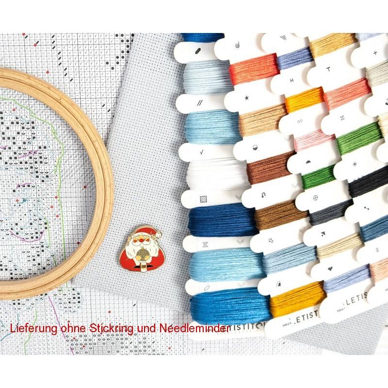 - Zählpackung mit Zählmuster, Stickset gezählter Kreuzstich, Kreuzstichset, Weihnachten, Weihnachtsmann mit Geschenkesack auf dem Schornstein