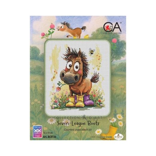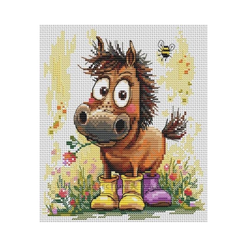 - Zählpackung mit Zählmuster, Kreuzstichset, Stickset gezählter Kreuzstich, Tiere, Pferde, Pferd mit Gummistiefeln