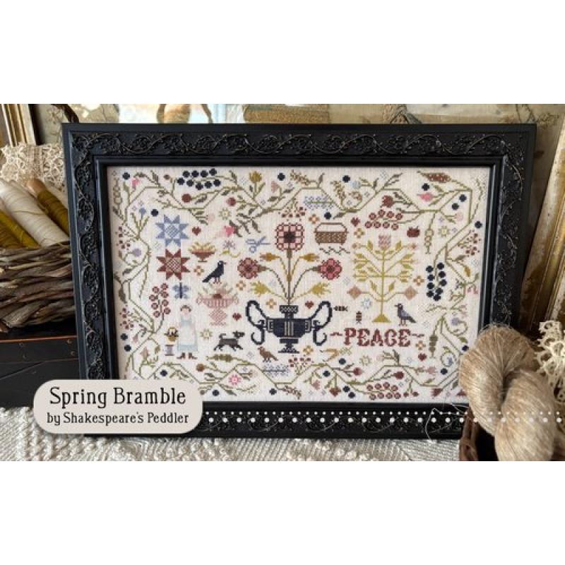 Spring Bramble Stickvorlage, Shakespeare’s Peddler Cross Stitch, botanischer Sampler, Frühlings Stickmuster, Urnenmotiv Stickvorlage, Peace Sampler, Folk Art Cross Stitch, Naturmotiv Stickvorlage, Nashville Needlework Market 2026, Kreuzstichvorlage