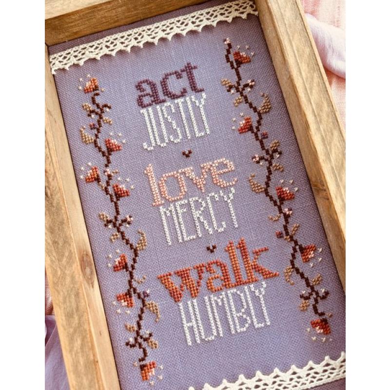 Micah 6:8 Stickvorlage, Sweet Wing Studio Cross Stitch, Bibelvers Kreuzstich, christliches Stickmotiv, Typografie Stickerei, florale Bordüre Stickmuster, inspirierendes Stickdesign, modernes Kreuzstichprojekt, faith cross stitch pattern, Handmade Scripture Embroidery