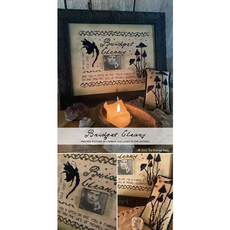 Die Stickvorlage Bridget Cleary von The Primitive Hare ist ein außergewöhnliches, mystisch‑historisches Design, das Folklore, Legende und düstere irische Geschichte miteinander verbindet. Im Zentrum steht der Name Bridget Cleary, begleitet von einem markanten Zitat, das sich auf die berühmte irische Ballade bezieht. Das Motiv kombiniert Vintage‑Elemente, eine geheimnisvolle Frauenfigur, Pilze, Naturmotive und eine dunkle, magische Atmosphäre – typisch für den unverwechselbaren Stil von The Primitive Hare.