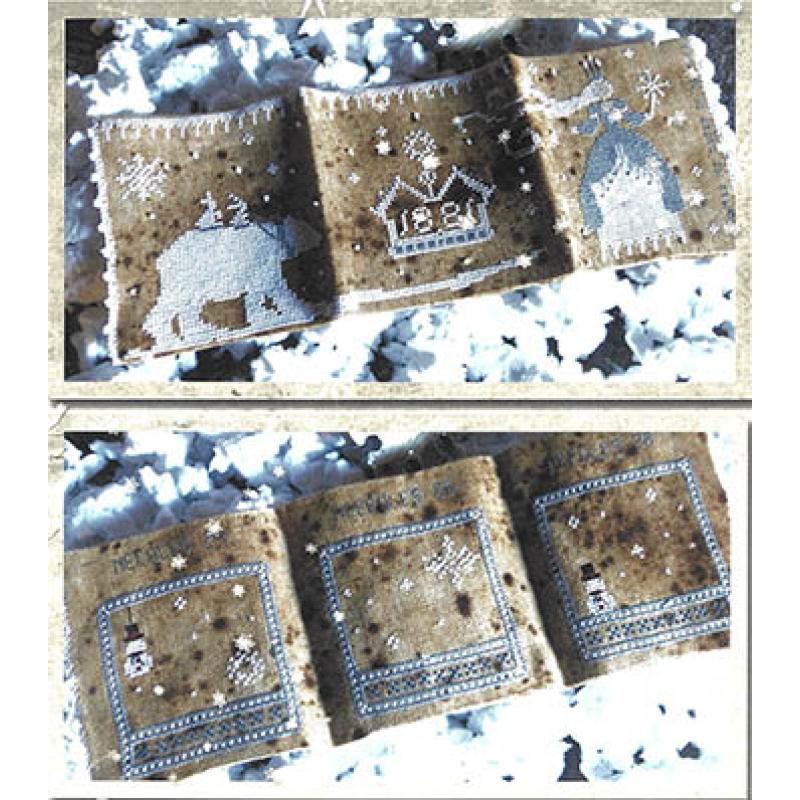 - Drei quadratische Stickfelder mit kleinen Wintermotiven: