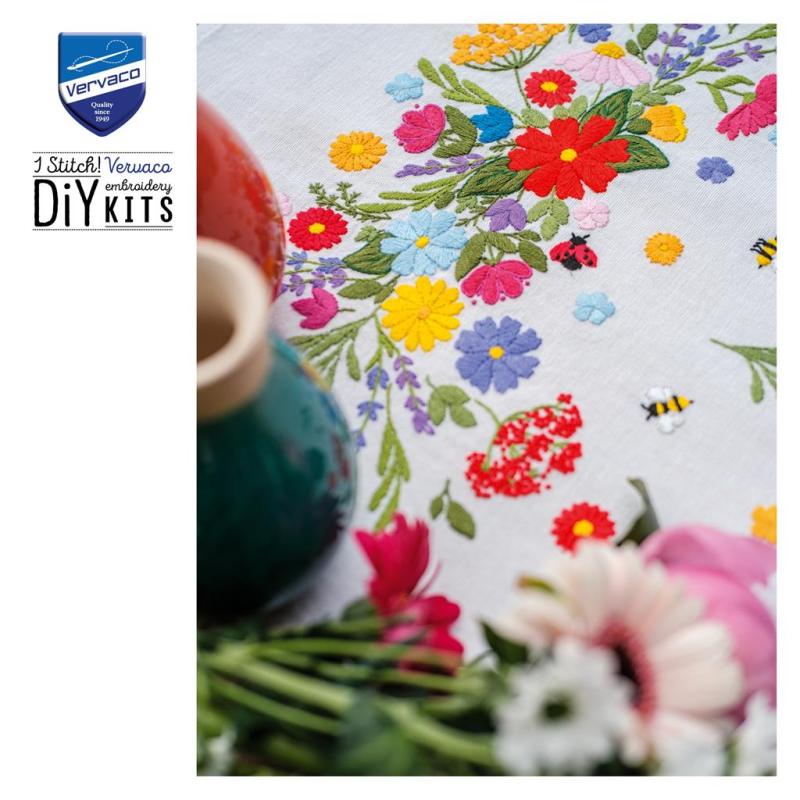 Tischdecke Bunte Blumenwelt bedruckt - Vervaco Verachtert (Stickpackung)