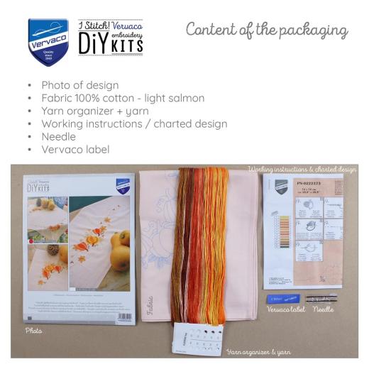• Die Packung enthält die fertig genähte Tischdecke (100% Baumwolle das vorgedruckte Design verschwindet nach der Wäsche), Stickanleitung in 8 Sprachen, DMC Stickgarne 13 Farben (100% Baumwolle), Frontbild und Sticknadel
