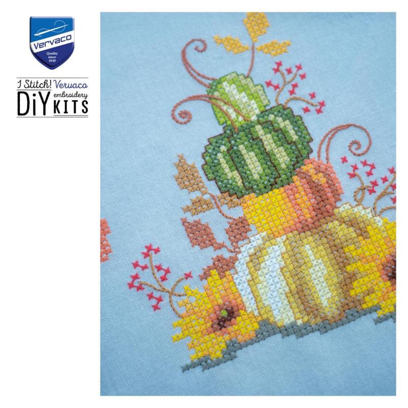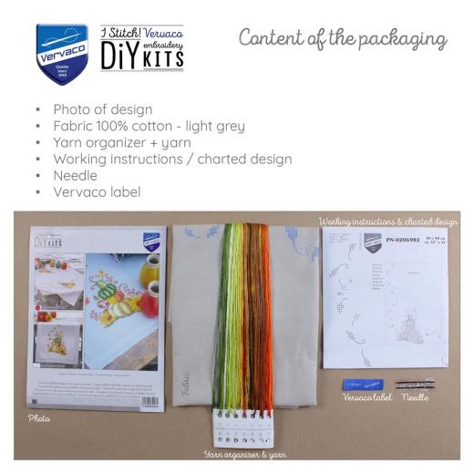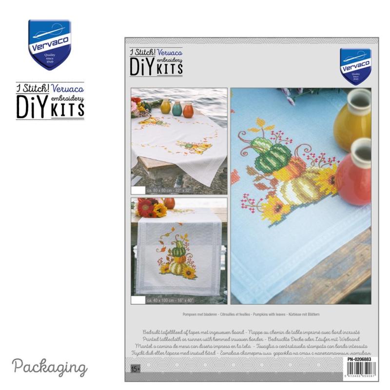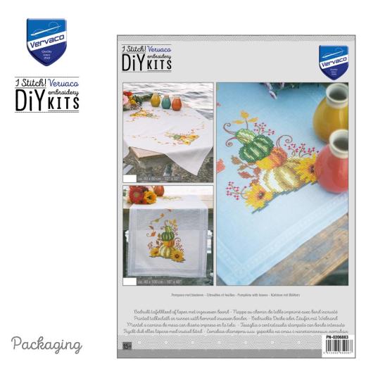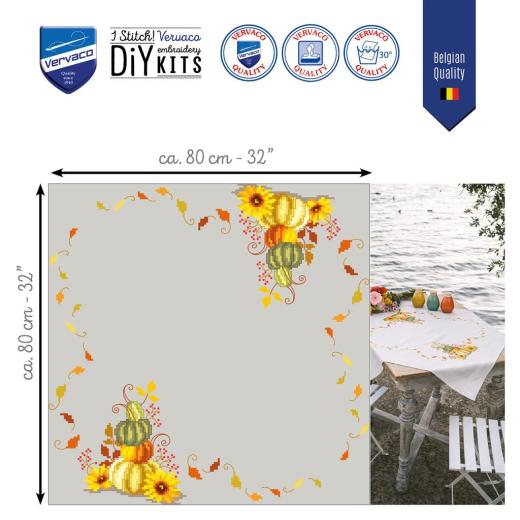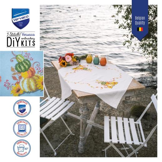 Tischdecke Kürbisse mit Blättern bedruckt - Vervaco Verachtert (Stickpackung)