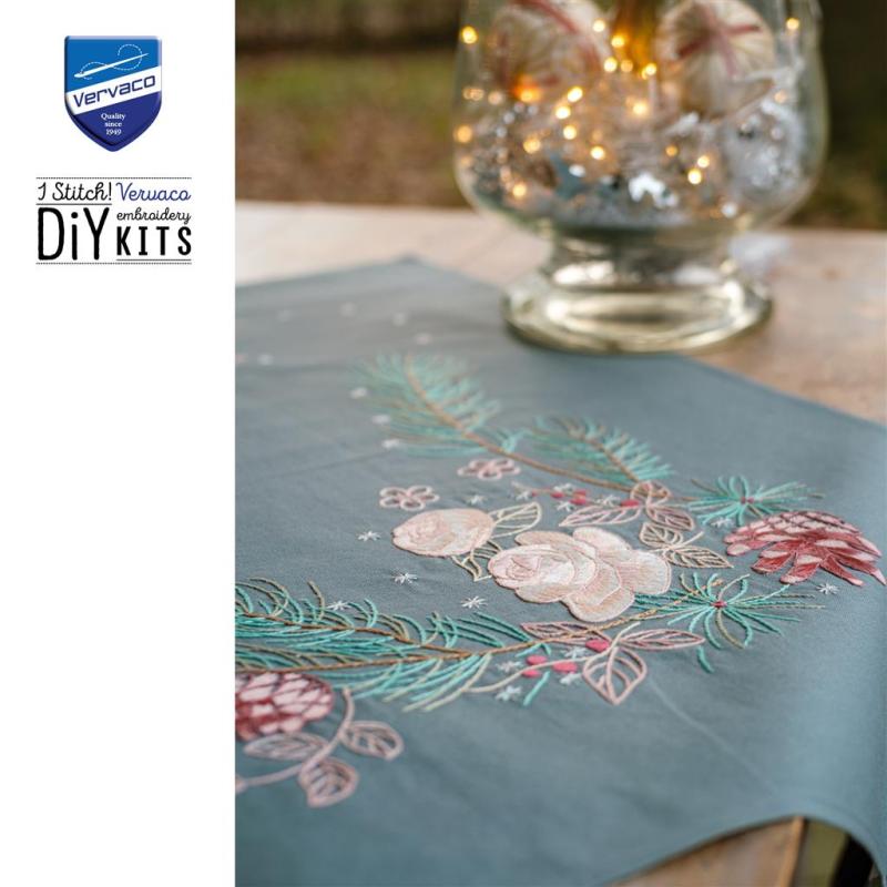 Tischdecke Weihnachtsrosen bedruckt - Vervaco Verachtert (Stickpackung)