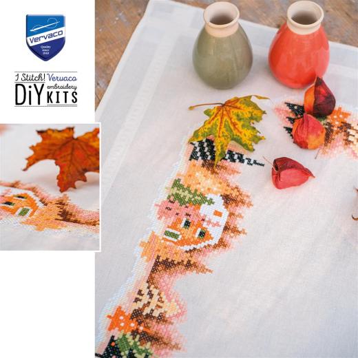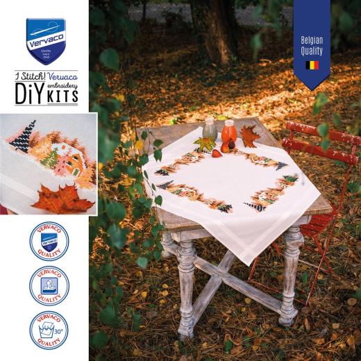 • Die Packung enthält die fertig genähte Tischdecke (100% Baumwolle,  das vorgedruckte Design verschwindet nach der Wäsche), Stickanleitung in 8 Sprachen, DMC Stickgarne 13 Farben (100% Baumwolle), Frontbild und Sticknadel