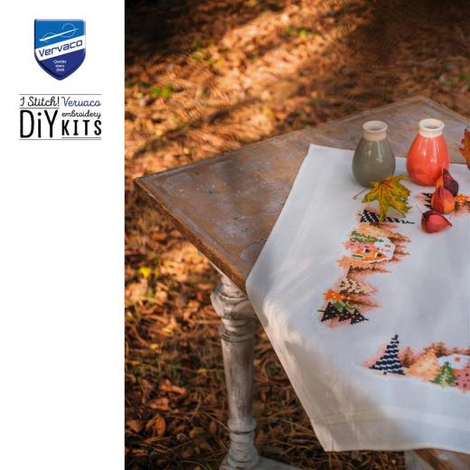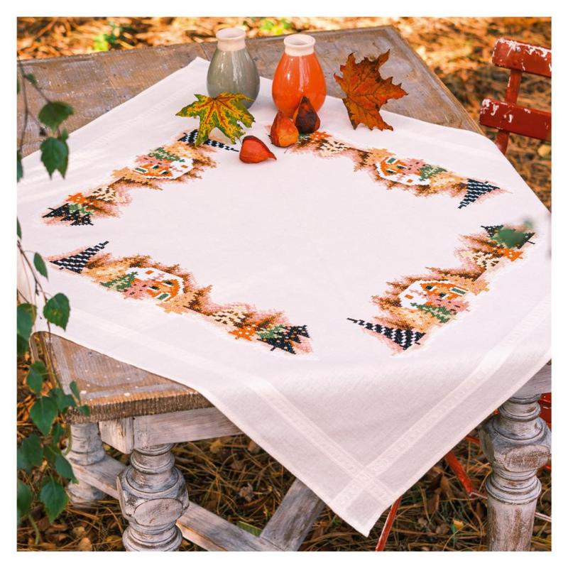 Tischdecke Winterdorf bedruckt - Vervaco Verachtert (Stickpackung)